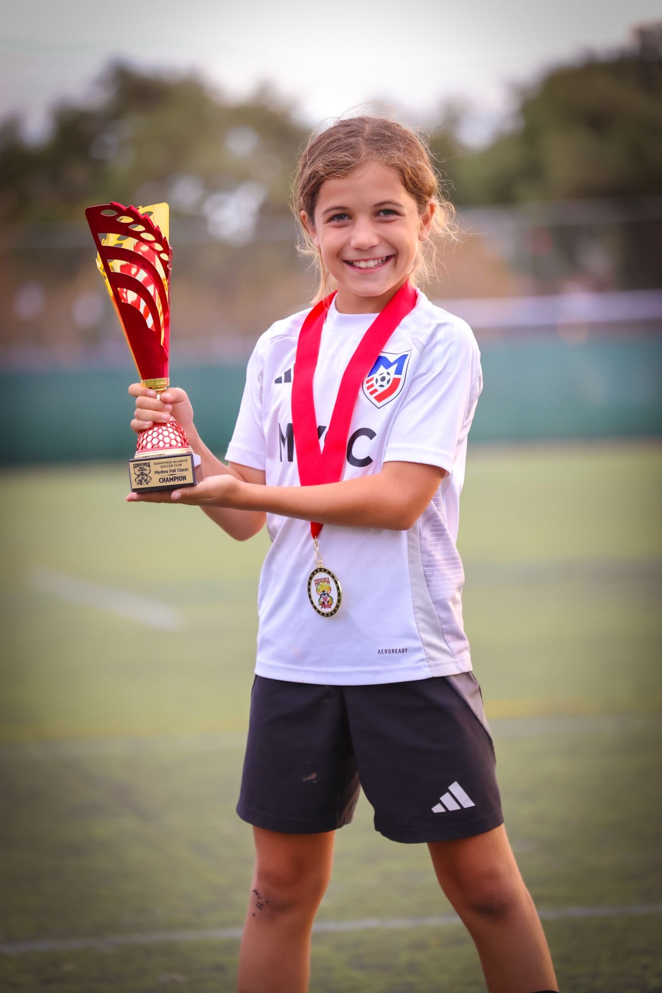 Because we had won two games and tied one, we made it to the finals to play the best team of the tournament, Marin FC, who are really good. We’ve played twice already this season and they’ve beaten us each time. So again, we had the attitude, “As long as Sasha plays hard and stays positive, we’ll have a good time.” Sasha had already anchored on how fun it would be to get a second-place medal. She’d never gotten a single medal before (in her life) and even getting the second-place one would be really fun. She was excited.